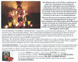 Si quieres incluir a tu difunto en esta tradición de memorial e intercesión apunta sus datos en la hojita del Narthex y